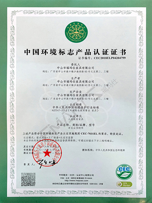 福瑪仕中國環境標志產品認證證書